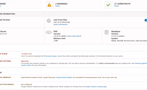 Nová obrazovka hlášení stavu v Drupalu 8.3